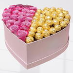 22 roses violettes 36 pièces Ferrero Boîte en forme de cœur rose