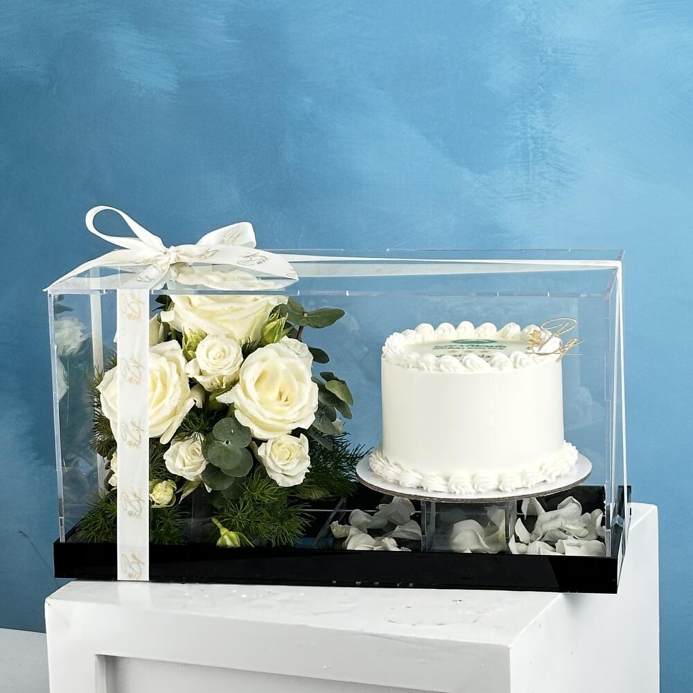 Ce magnifique coffret spécial fleuriste se compose d'eucalyptus rafraîchissant (2 pièces) qui se marie sans effort à un délicieux assortiment soigneusement sélectionné de mini-roses (4 pièces) et de roses (3 pièces), créant une harmonie à couper le souffle de beauté et d'élégance. L'ensemble est parfaitement couronné par un gâteau de 300 g, apportant une douce conclusion à votre expérience aromatique. Avec son mélange ludique de fleurs et de gourmandise, c'est le plaisir parfait pour toute occasion ou décoration.