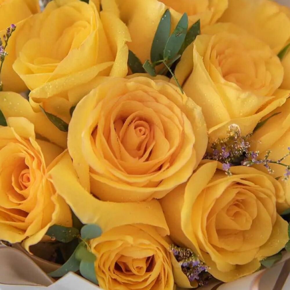Illuminez la journée d'une personne chère avec notre bouquet Belle, une magnifique composition de 21 roses jaune vif associées à de délicates fleurs de statice lavande, élégamment emballées dans du papier blanc. Ce bouquet rayonne de joie, d'amitié et d'admiration, ce qui en fait le cadeau de luxe idéal pour elle, qu'il s'agisse de votre petite amie, épouse, mère, sœur ou toute autre femme spéciale. Parfait pour les anniversaires, les fêtes, la fête des Mères, les fiançailles, les mariages, les gestes romantiques ou toute autre célébration, ce luxueux bouquet jaune et lavande offre un cadeau floral visuellement saisissant et mémorable. Ses roses jaune vif symbolisent le bonheur et l'énergie positive, tandis que le statice lavande apporte élégance et texture, pour un bouquet raffiné et attentionné. Confectionné artisanalement par Majd Flowers, chaque fleur est soigneusement sélectionnée pour sa fraîcheur et sa qualité exceptionnelles, créant ainsi un cadeau floral de luxe, un geste romantique ou un bouquet de célébration. Idéal comme bouquet d'anniversaire, cadeau d'anniversaire de mariage, fleurs de félicitations ou cadeau de luxe pour votre petite amie ou votre épouse.