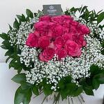 Grande Rose – Bouquet de 20 roses roses avec gypsophile et ruscus