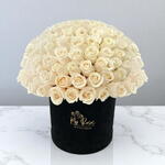 Boîte en velours noir avec 50 roses blanches