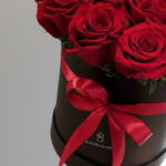 Boîte ronde noire - 1 pce rose rouge - 25 pce