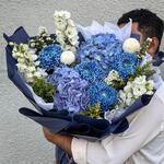 ping-pong - 3 pce hydrangea blue - 2 pce aster blanc - 3 pce delphiniums blancs - 3 pce delistar bleu - 4 pce