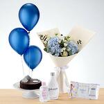 Accueillez un précieux petit garçon avec ce charmant coffret cadeau ! Comprenant un bouquet frais d'hortensias bleus et de roses blanches, accompagné de ballons bleus, d'un délicieux gâteau au chocolat et des essentiels de soin pour bébé Johnson’s. Une manière attentionnée et joyeuse de célébrer de nouveaux départs.