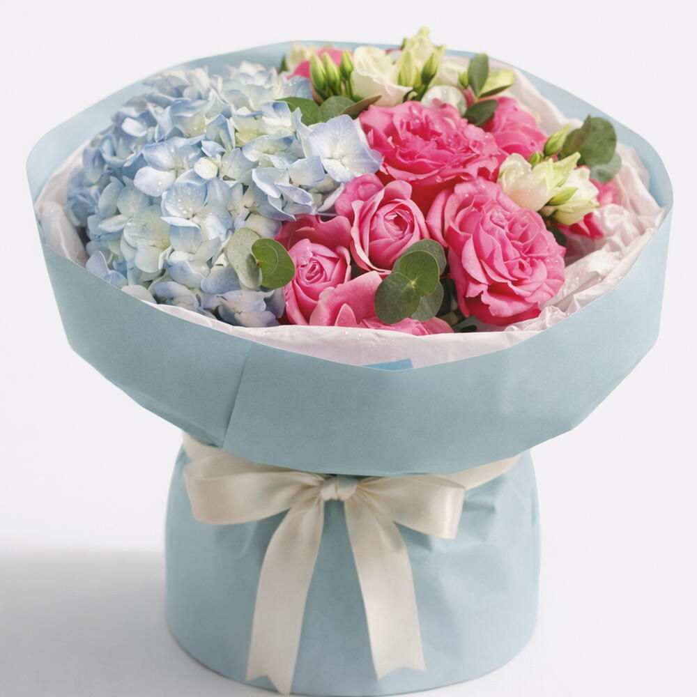 Découvrez une élégance intemporelle avec ce magnifique bouquet harmonieux composé d'une somptueuse hortensia bleue, de quatre pivoines Giselle et de quatre roses branchues blanches. Chaque fleur a été soigneusement sélectionnée pour créer une harmonie gracieuse de couleurs, de textures et d'émotions – une composition qui incarne le calme, la beauté et une profonde affection. Parfait pour exprimer l'amour, la gratitude ou la sérénité, ce bouquet est un cadeau exquis pour les anniversaires, les fêtes ou tout autre moment précieux qui mérite une attention toute particulière. ✨ 💐 Offrez une touche d'élégance sereine – commandez dès aujourd'hui votre bouquet d'hortensias bleus, de pivoines et de roses pour une livraison le jour même à Dubaï !