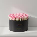 Un doux instant suspendu dans le romantisme, le coffret « Blush at Twilight Love Box » capture la tendre beauté de l’amour au crépuscule. Composé de 20 à 23 roses roses, cet arrangement est soigneusement agencé pour créer une surface lisse et vaporeuse aux délicates nuances rosées, symbolisant l’admiration, l’affection et une émotion profonde. Présenté dans le coffret ovale « You Are My World » de taille moyenne, aux finitions noir profond et à l’inscription dorée raffinée, ce bouquet de Saint-Valentin exprime avec subtilité et force l’amour véritable, nous rappelant qu’il n’a besoin d’aucun mot.