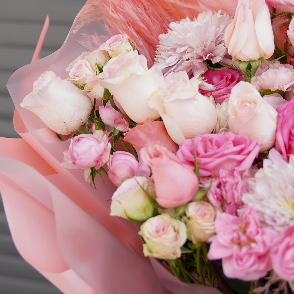 Blush Devotion is a romantic expression of tenderness and affection. Crafted with layers of soft pink flowers, this bouquet feels warm, gentle, and deeply emotional. Its full shape and flowing arrangement symbolize care, admiration, and heartfelt love. Ideal for anniversaries, celebrations, or moments of gratitude, this bouquet wraps emotion into every petal.