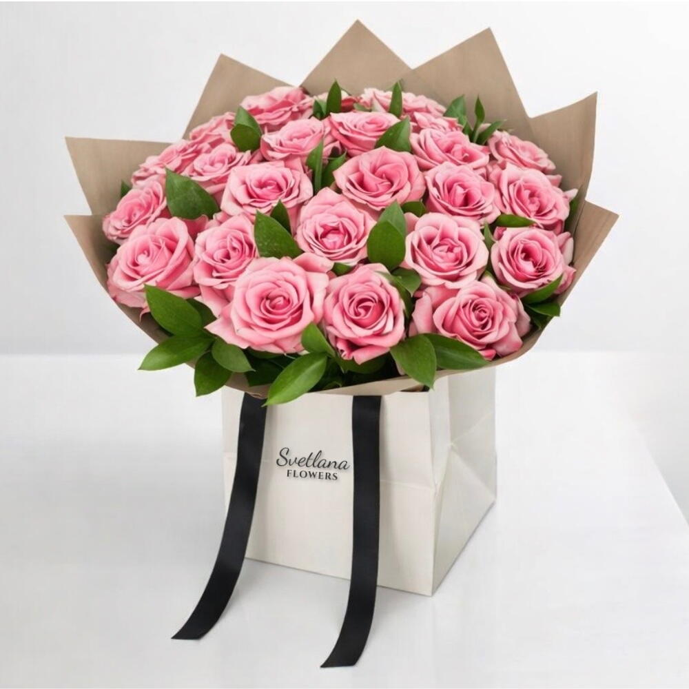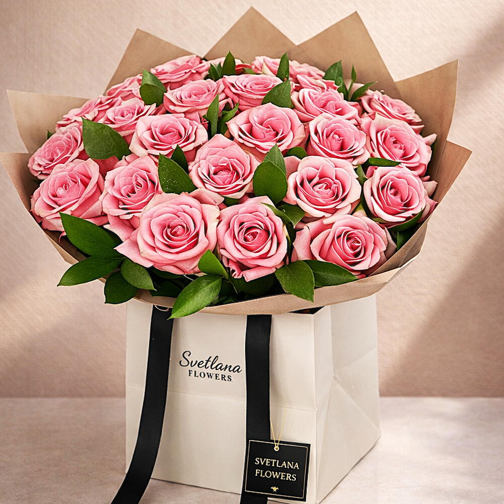 A graceful expression of admiration. 21 fresh pink roses arranged in an elegant white gift bag — perfect for birthdays, romantic surprises, and thoughtful celebrations. Delivered fresh across Dubai.