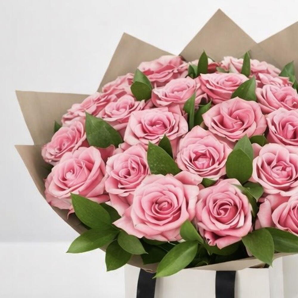 21 roses roses dans un sac blanc de luxe – cadeau romantique à Dubaï