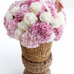 hydrangea pink - 20 pce pivoine blanche - 25 pce panier en osier fait main - 1 pce