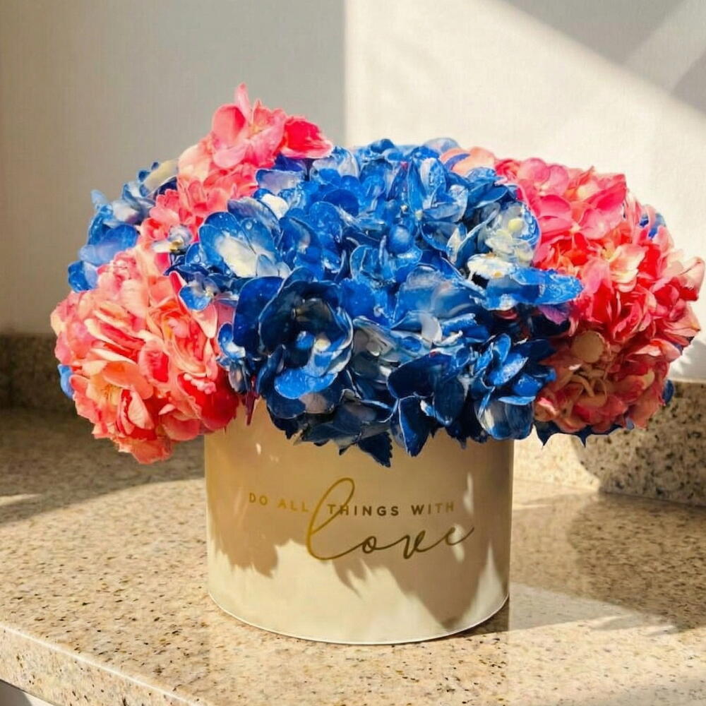 Bleu-rose rosissant – Boîte à chapeau d'hortensias élégante