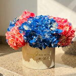 hydrangea pink - 3 pce hydrangea blue - 3 pce boîte à chapeaux blanche - 1 pce