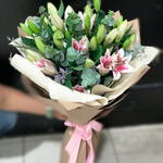 Eucalyptus - 7 pce Limonium - 3 pce lys roses - 10 pce