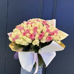 Composition : roses blanches - 50, rubans - 2, roses roses - 51, emballage - 1 Dimensions : LARGEUR - 55 cm ; HAUTEUR - 60 cm ; LONGUEUR - 60 cm ; (emballage inclus) Taille : 55 x 60 x 60 cm