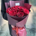 Composition : 15 roses rouges, 1 emballage, 1 ruban. Dimensions : largeur 35 cm, hauteur 60 cm, longueur 60 cm (emballage compris).