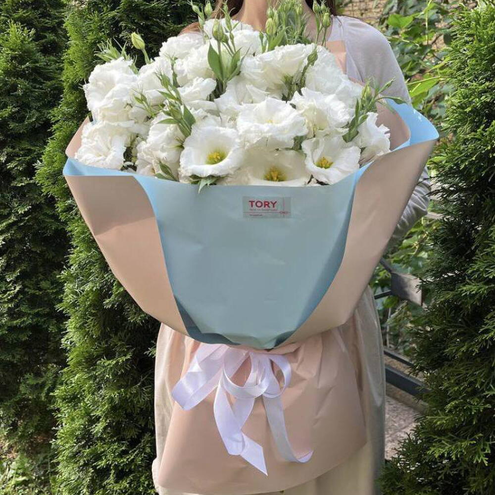 Composition: Eustoma - 15, Wrapped - 3, Ribbon - 2 Sizes: WIDTH - 45CM; HEIGHT - 60CM; LENGTH - 60CM; (including packaging) Размер: 45 x 60 x 60 см