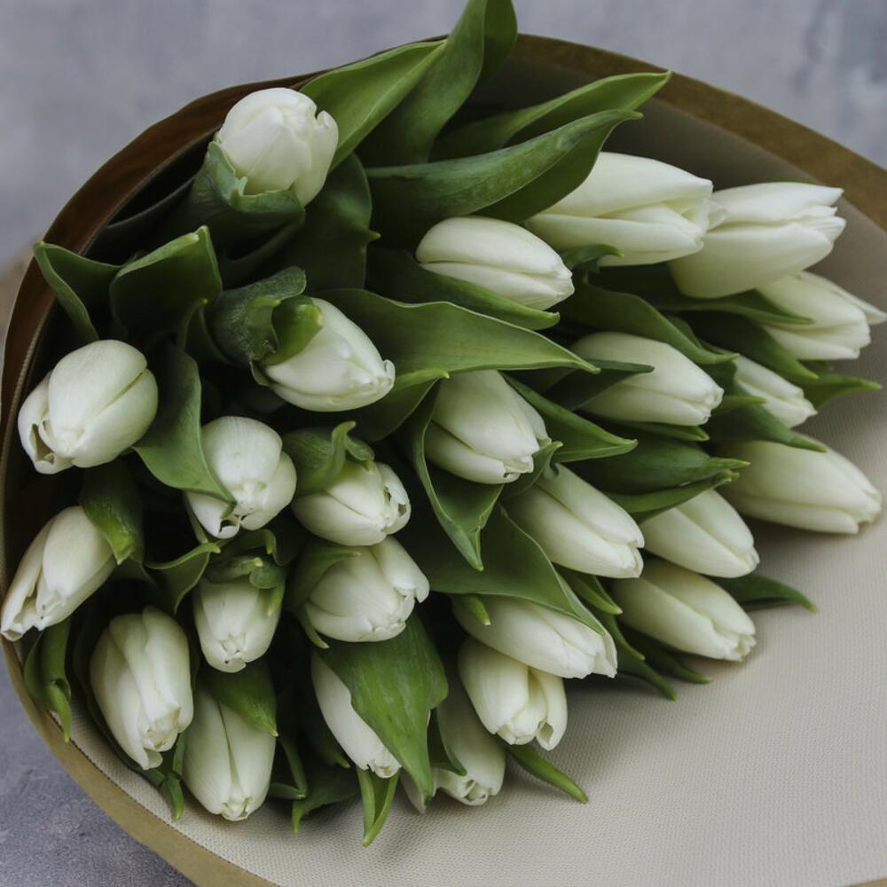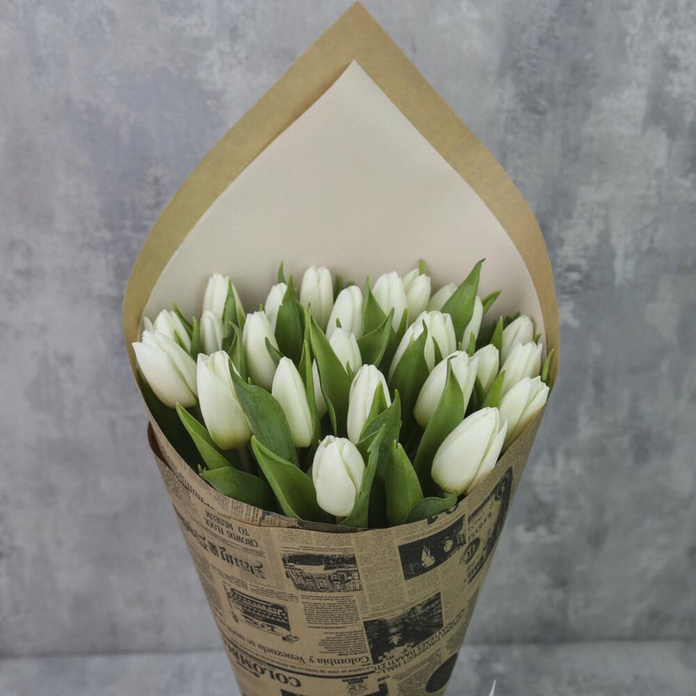 Ribbon - 1 pce papier kraft - 3 pce tulipes blanches - 25 pce