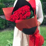 Composition: rose rouge - 35, Emballés - 4, Ruban - 2 Dimensions: LARGEUR - 40CM; HAUTEUR - 65CM; LONGUEUR - 65CM; (y compris l'emballage) Taille: 40 x 65 x 65 cm