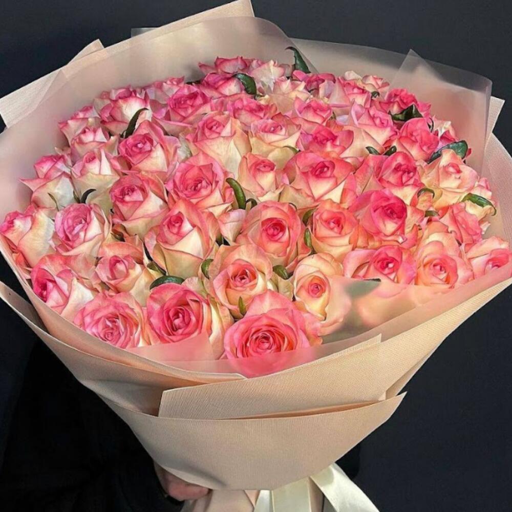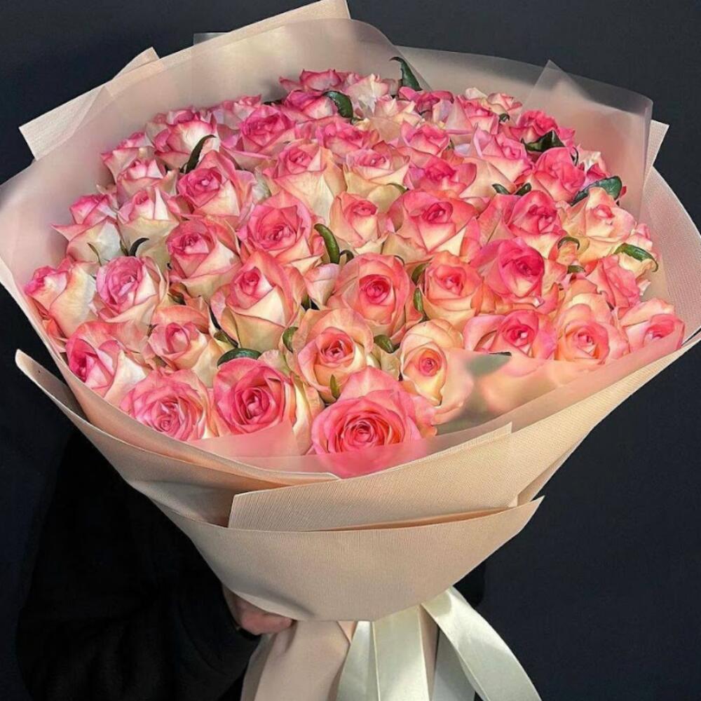 Bouquet de 51 roses délicates en fleurs