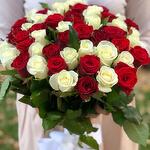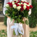 Composition: rose red - 25, rose white - 26, ribbon - 1 Sizes: WIDTH - 35CM; HEIGHT - 50CM; LENGTH - 50CM; (including packaging) Размер: 35 x 50 x 50 см