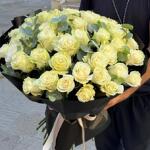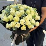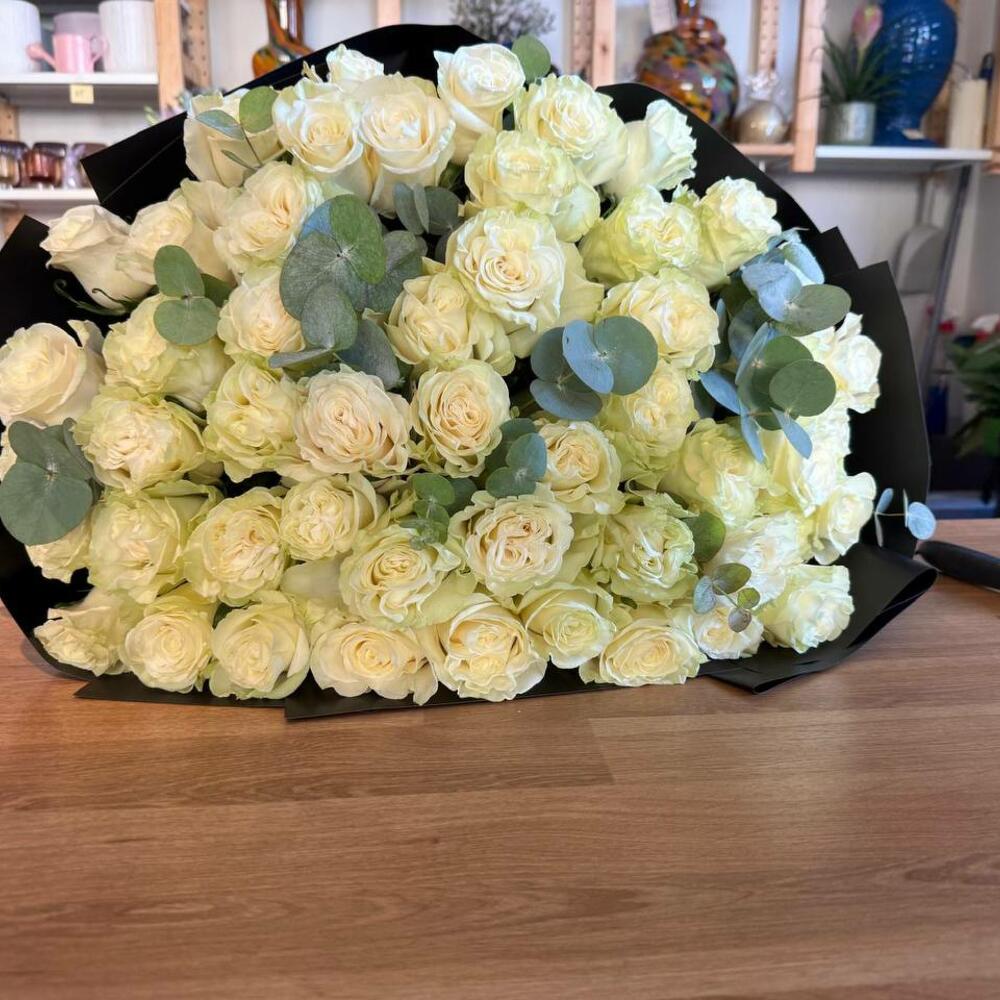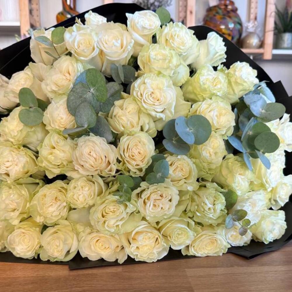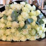 Bouquet de 51 roses blanches et d'eucalyptus premium