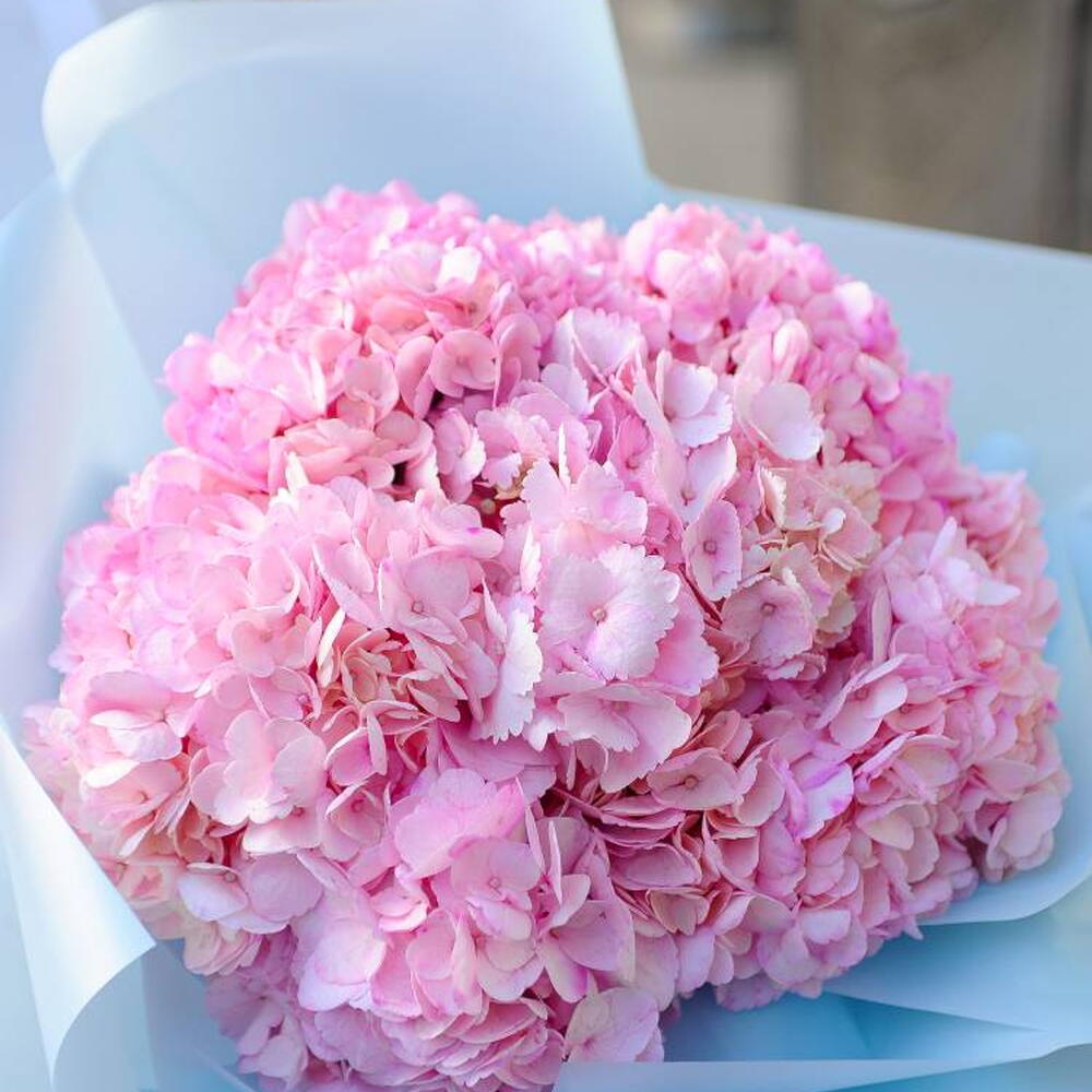 Composition: Hydrangea - 7, Wrapped - 1, Ribbon - 1 Sizes: WIDTH - 45CM; HEIGHT - 60CM; LENGTH - 60CM; (including packaging) Размер: 45 x 60 x 60 см