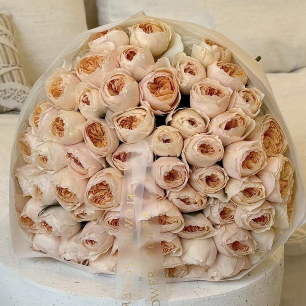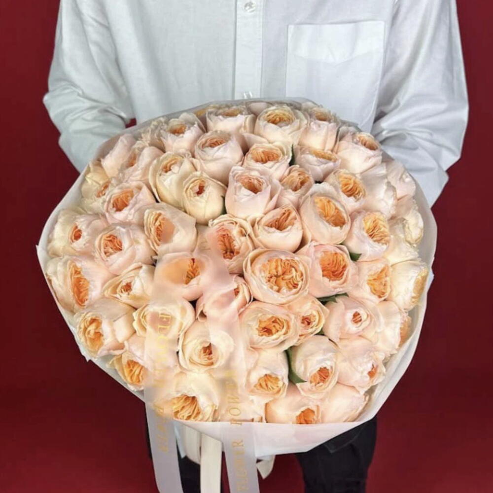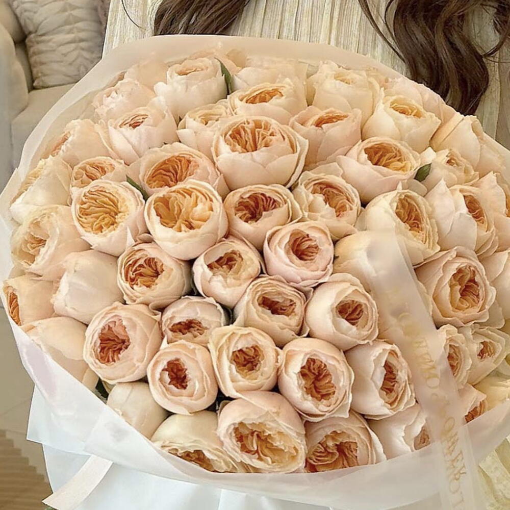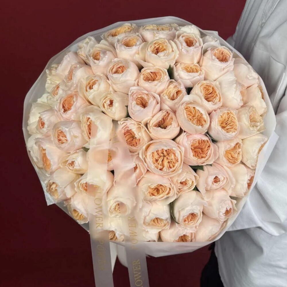Un bouquet qui rayonne de la chaleur d'un lever de soleil à Dubaï — Apricot Veil est un chef-d'œuvre de douce radiance et de luxe raffiné. Composé de roses de jardin luxuriantes dans des tons pêche et crème délicats, ce bouquet saisit l'essence de l'élégance et de la sérénité, idéal pour ceux qui apprécient la beauté discrète avec une touche de sophistication.