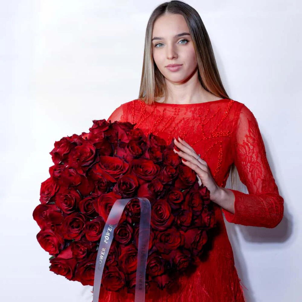 Un bouquet saisissant et luxueux de roses rouges haut de gamme, méticuleusement arrangé en une forme de cœur parfaite. Cette composition est le symbole ultime de l'amour pur, du désir et du dévouement — un cadeau romantique éblouissant, parfait pour la Saint-Valentin, les anniversaires ou les demandes en mariage. Taille moyenne - 70 roses rouges