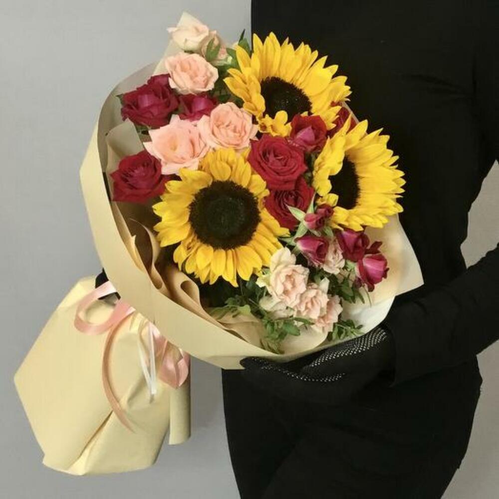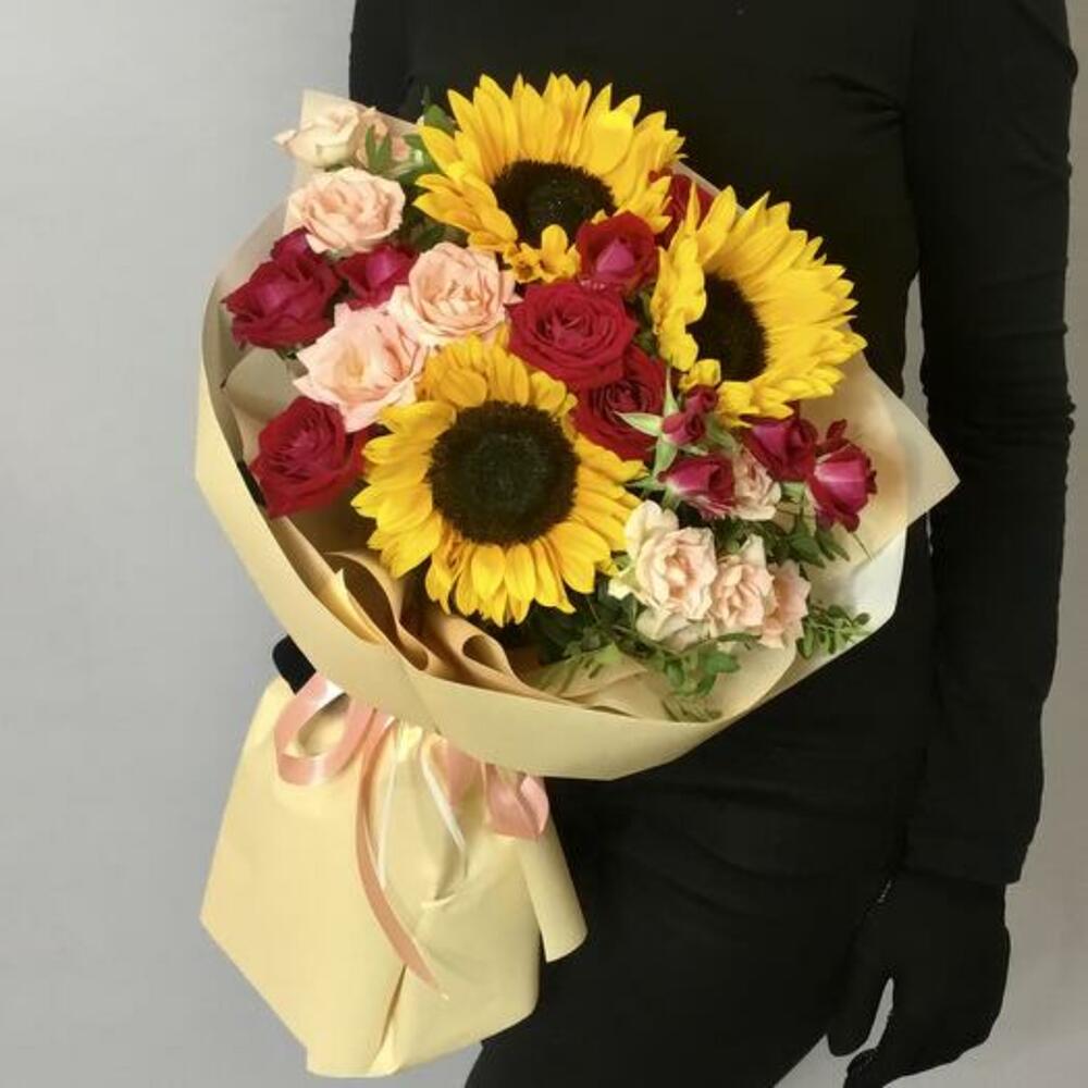 Bouquet with Sunflowers and Roses "Berry Summer"-1877