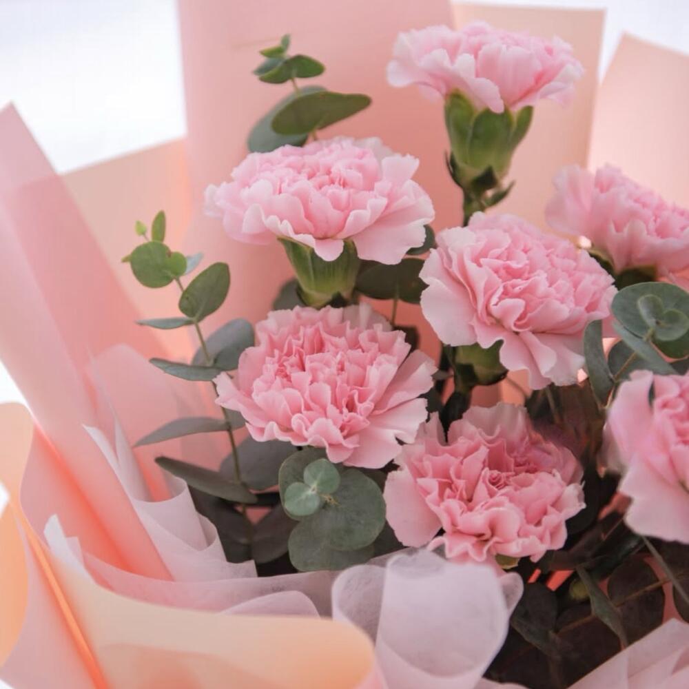Plongez dans la symphonie envoûtante de ce Mono Bouquet. Composé de 8 œillets roses délicatement nuancés, couronnés de feuilles d'eucalyptus parfumées, ce chef-d'œuvre est l'expression parfaite d'une élégance discrète et d'émotions sincères. Ce n'est pas seulement un bouquet, c'est un voyage poignant des sens !