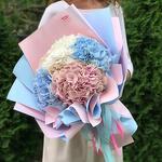 Composition : 5 hortensias, 5 emballés, 3 rubans. Dimensions : largeur 50 cm, hauteur 50 cm, longueur 50 cm (emballage inclus). Dimensions : 50 x 50 x 50 cm.