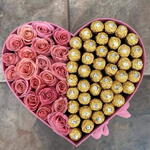 Indulge in our stunning Mono Bouquet, elegantly handcrafted with 25 fresh Pink Roses, each one symbolizing gratitude, grace, and admiration. The bouquet is tastefully adorned with 32 pieces of delectable Ferrero chocolates, making it an exquisite blend of beauty and sweetness. Its more than a gift, its a memorable gesture for your loved ones.