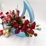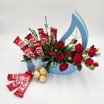 Wax flower - 3 pce kit kat chocolat - 10 pce ruscus leaves - 3 pce mini-roses rouges - 6 pce boîte de feuilles haut de gamme - 1 pce