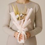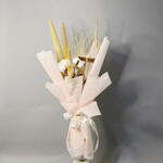 Coton - 3 pce bâton de cannelle - 2 pce herbe de la pampa beige - 1 pce feuille de maïs séchée - 2 pce tiges d'accent séchées jaunes - 1 pce