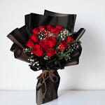 Un bouquet à couper le souffle de roses d'un rouge profond, délicatement encadré de gypsophiles. Enveloppé d'un blanc élégant, c'est le symbole parfait d'un amour intemporel et de la passion—idéal pour les anniversaires, les demandes en mariage ou les surprises romantiques.
