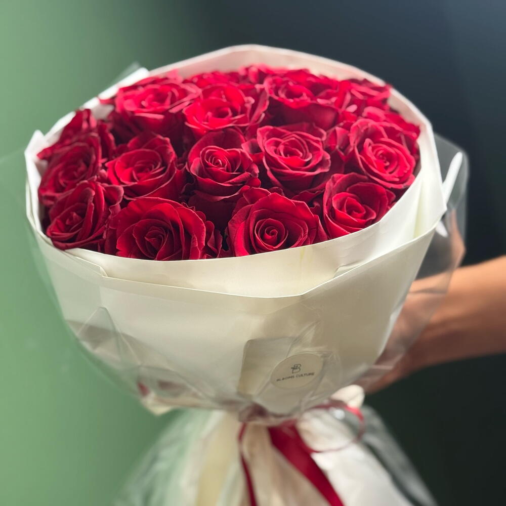 Un bouquet intemporel de roses rouges haut de gamme, magnifiquement présenté dans un emballage blanc élégant et noué d'un ruban en satin. Symbolisant l'amour, la passion et l'admiration, ce bouquet est le cadeau parfait pour les anniversaires, les gestes romantiques ou les célébrations spéciales. Chaque rose est cueillie à la main pour sa couleur éclatante et sa fraîcheur durable, créant une expression saisissante d'émotion sincère.