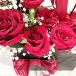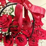 Ribbon - 2 pce Gypsophila - 3 pce bag - 1 pce red roses - 16 pce
