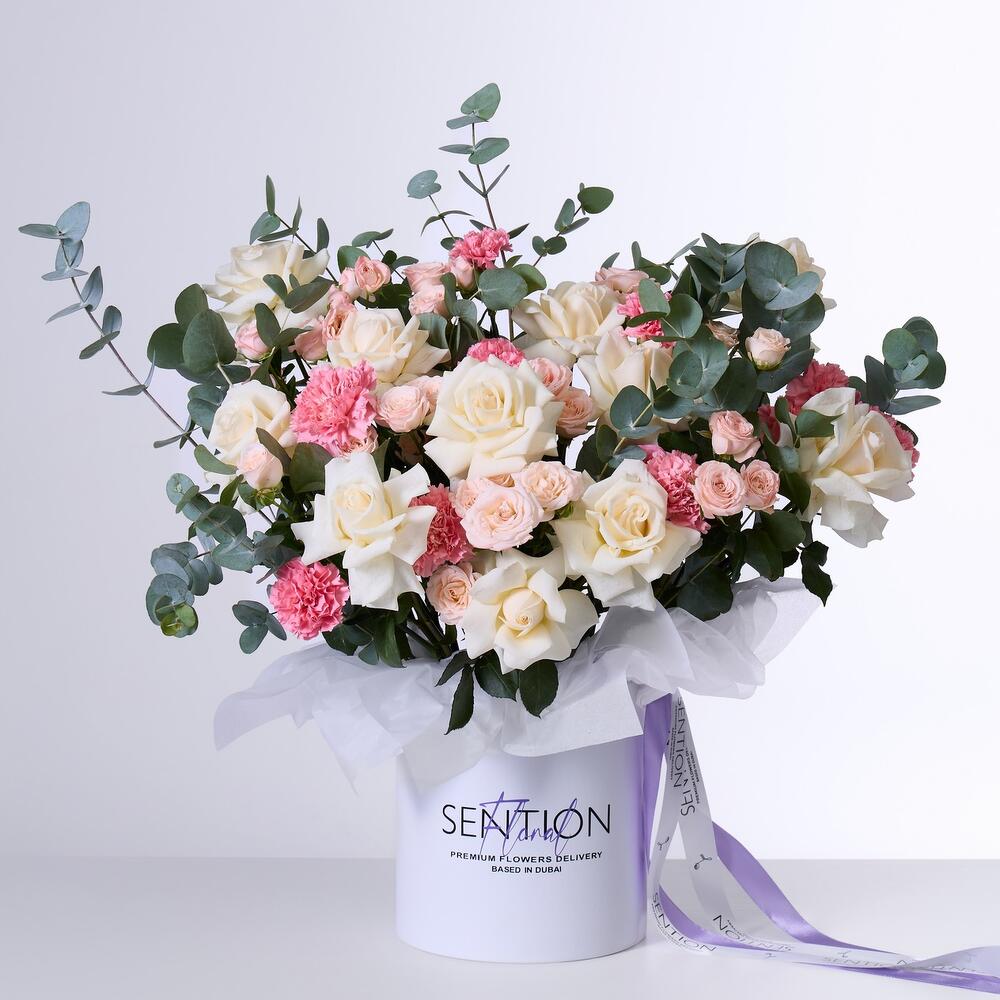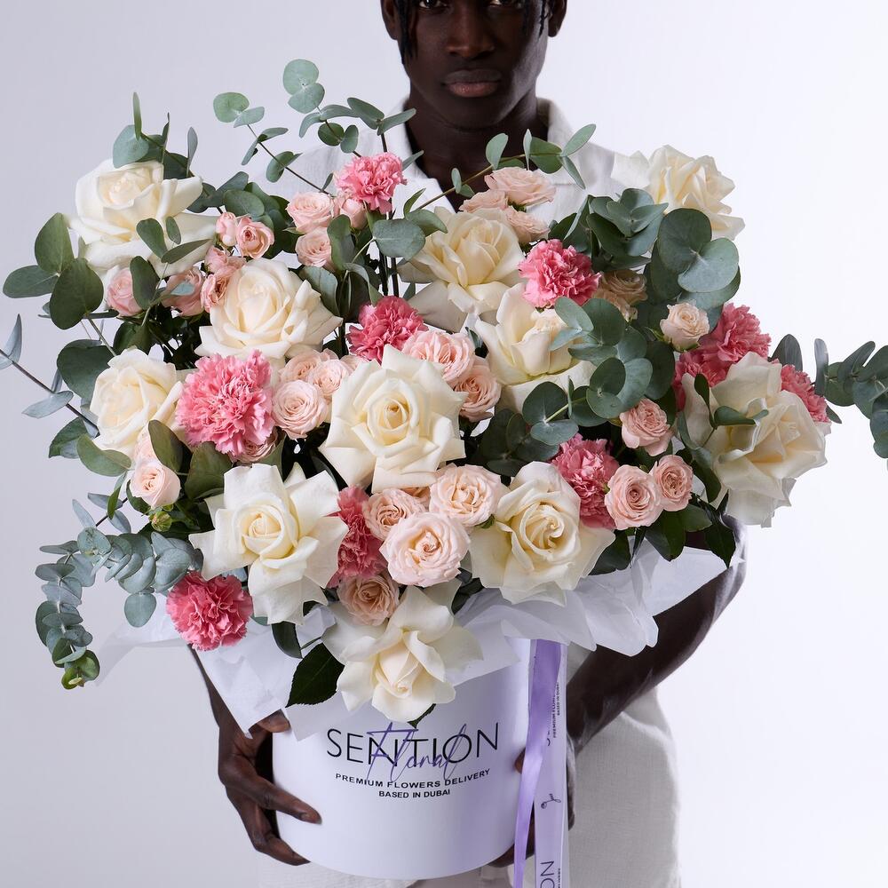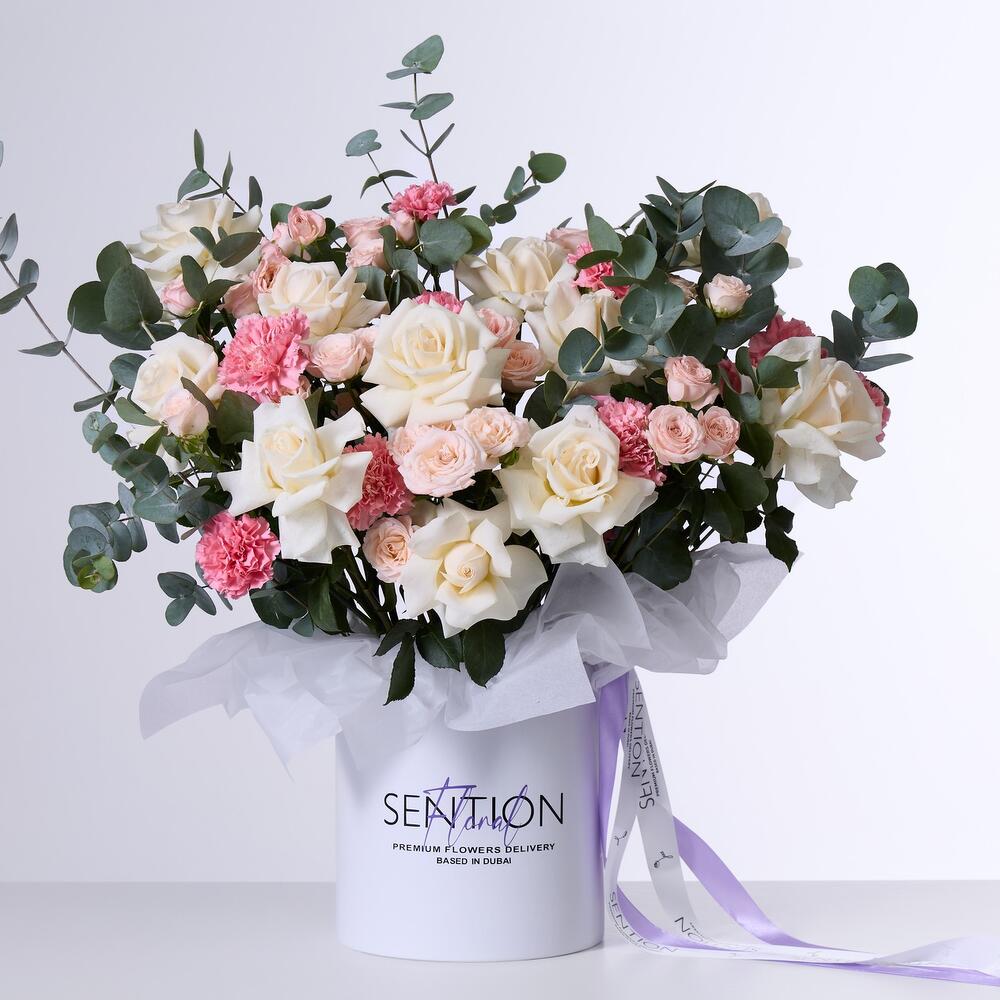 Spray rose - 10 pce carnation - 10 pce eucalyptus - 5 pce roses - 10 pce