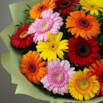 Illuminez n'importe quelle occasion avec notre bouquet Joie Colorée, composé de 15 mini gérberas éclatants dans un ravissant éventail de couleurs. Chaque fleur déborde de teintes gaies, créant une composition vive et joyeuse, parfaite pour les célébrations, les anniversaires ou simplement pour ajouter une touche de couleur à la journée de quelqu'un. Attaché à la main avec soin et joliment emballé, ce bouquet est conçu pour apporter des sourires et égayer les moments.