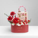 Combo d'amour avec chocolats est une expression raffinée de la Saint-Valentin qui marie des fleurs romantiques à une gourmandise gastronomique, comprenant 3 roses rouges, 1 hortensia blanc, 3 roses spray rouges et 5 eucalyptus disposés en une composition gracieuse et équilibrée. Présenté dans une grande boîte ovale «Dans mon cœur… toujours» écrite en arabe, cet élégant arrangement floral est accompagné d'un sachet de chocolats à la rose Bostani (18 pièces), créant un cadeau qui exprime l'amour à la fois par la beauté et la douceur. Soigneusement conçu, il est destiné à transformer des moments sincères en souvenirs inoubliables.