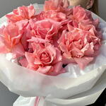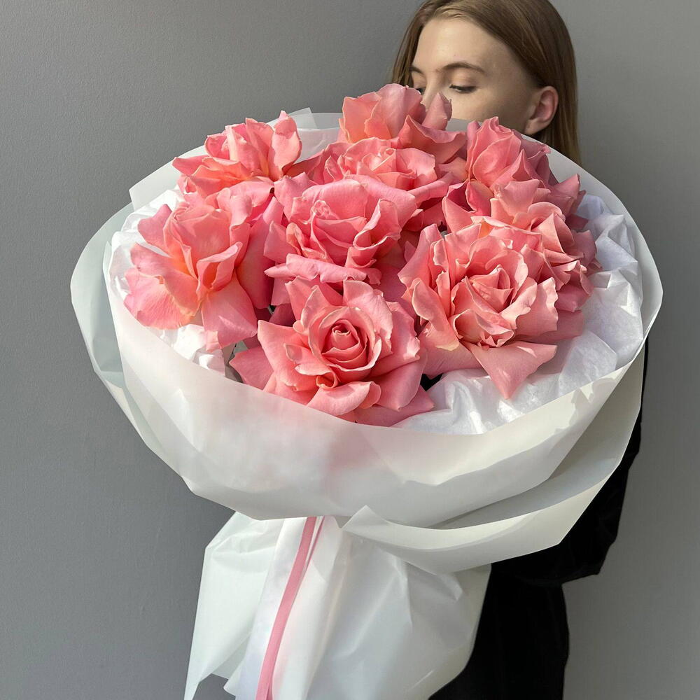Ce bouquet incarne le cœur même de l'été, sa chaleur et ses couleurs riches. J'ai sélectionné neuf grandes roses françaises d'un riche ton corail pour insuffler énergie et joie. Leurs larges boutons ouverts évoquent le soleil brûlant de midi. Le simple emballage blanc, comme un nuage, ne fait qu'accentuer la teinte flamboyante des pétales.
