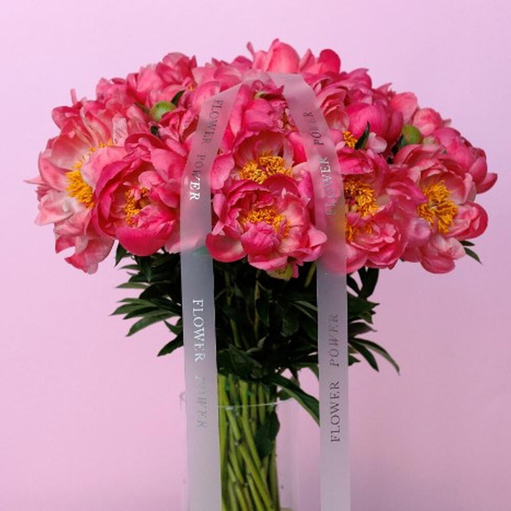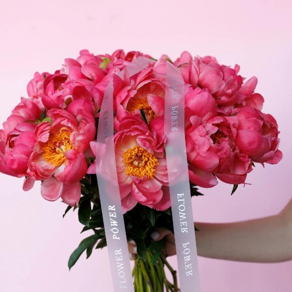 Corail : grand bouquet de 25 pivoines