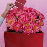 Une composition grandiose et résolument romantique mettant en scène vingt-cinq pivoines luxuriantes en pleine floraison, d'une délicate teinte corail. Ce bouquet spectaculaire exprime des sentiments profonds de joie, d'admiration et d'affection sincère. C'est un cadeau inoubliable, parfait pour célébrer la Fête des Mères, marquer un anniversaire spécial ou simplement envoyer un geste rayonnant d'amour et de reconnaissance à une personne chère.