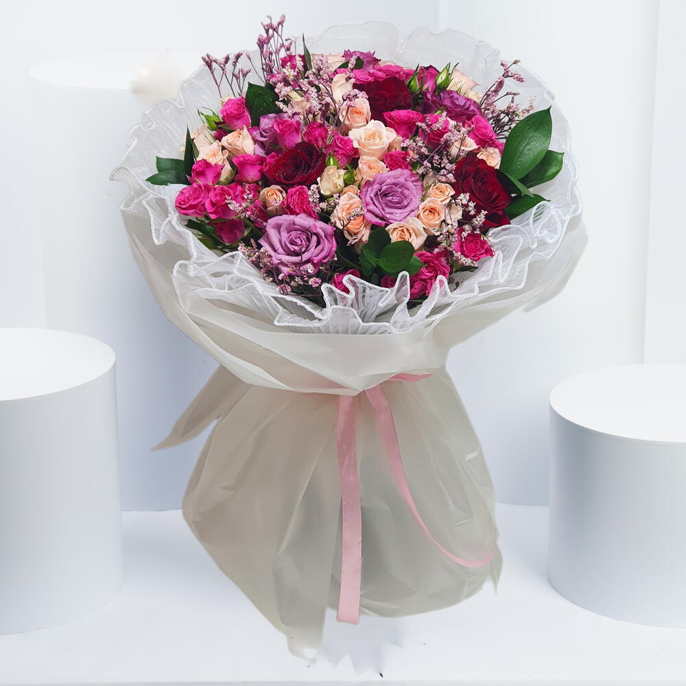 filtre vert - 4 pce red roses - 5 pce roses violettes - 6 pce roses spray pêche - 5 pce roses spray foncées - 5 pce