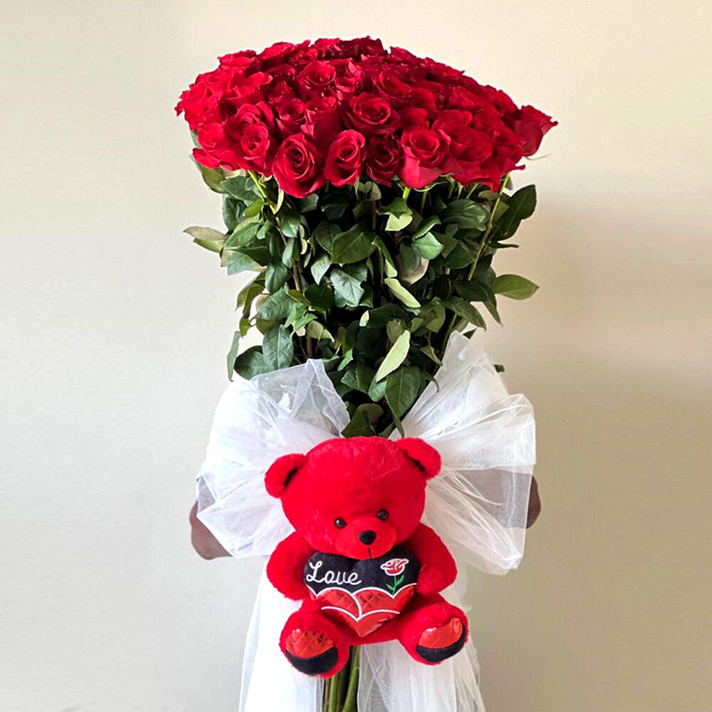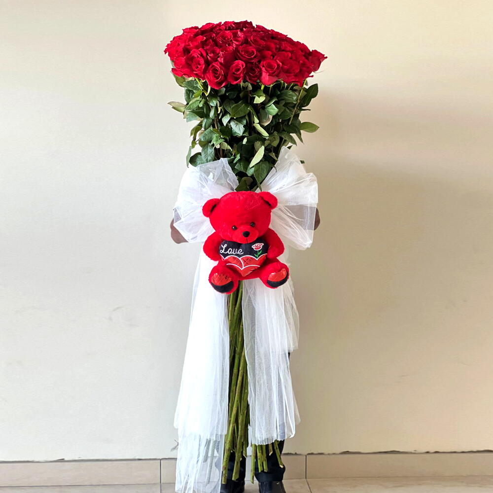 nounours - 1 pce red roses - 51 pce nœud en tulle - 1 pce