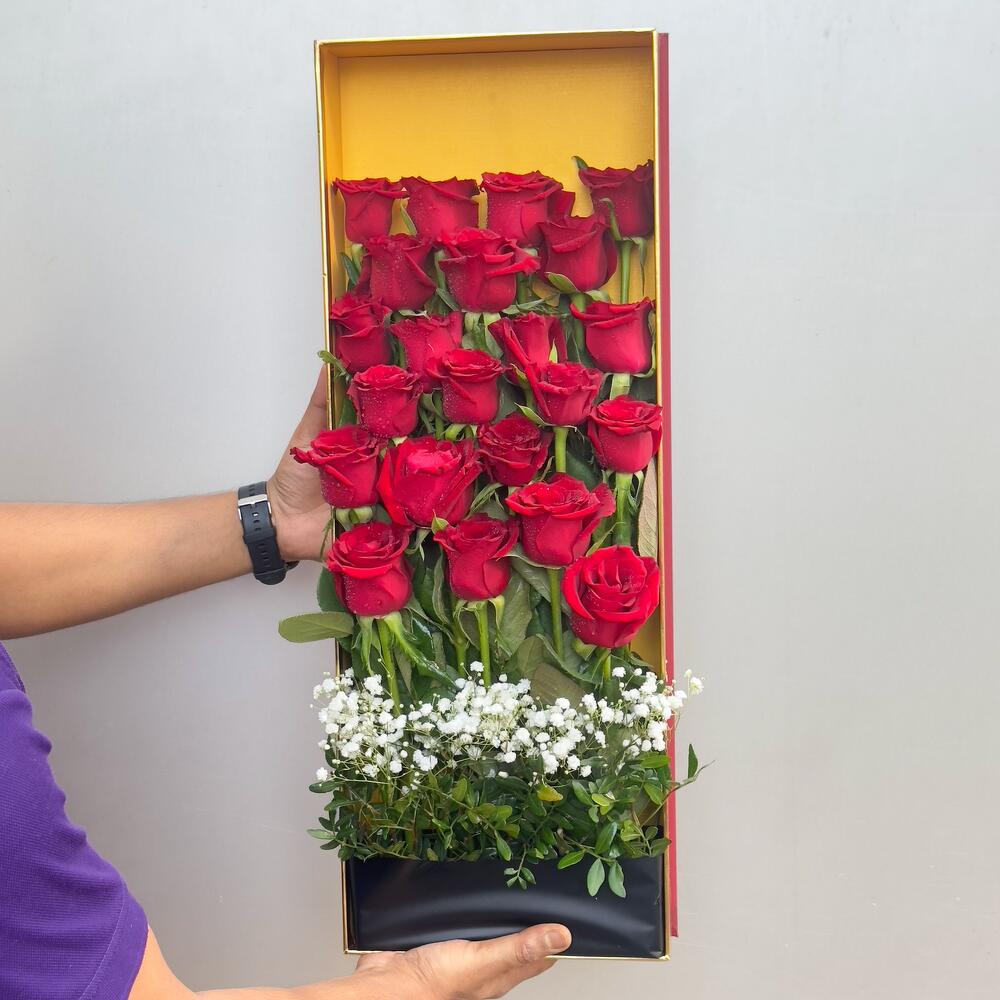 Crimson Reverie est l'alliance parfaite entre élégance moderne et romantisme intemporel. Présentée dans un élégant coffret transparent, cette composition luxueuse est composée de 21 roses rouges éclatantes, chaque fleur étant cueillie à la main pour symboliser la passion profonde, l'amour et la dévotion. Idéale pour les anniversaires, la Saint-Valentin, les demandes en mariage ou les grands gestes romantiques, cette œuvre d'art est conçue pour captiver au premier regard et rester gravée dans les mémoires. Avec sa présentation élégante, ce ne sont pas que des fleurs, mais une déclaration d'amour inoubliable. ✔️ 21 roses rouges de qualité supérieure dans un coffret luxueux transparent ✔️ Design élégant et moderne pour un cadeau percutant ✔️ Livraison le jour même disponible partout à Dubaï ❤️🌹 Rendez l'amour inoubliable ! Commandez Crimson Reverie dès aujourd'hui et profitez d'une livraison le jour même à Dubaï !