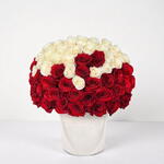D'une élégance gracieuse et d'une audace raffinée, cette exquise composition en forme de cœur de roses rouges et ivoire est la déclaration d'amour par excellence. Présentée dans une élégante boîte à chapeau blanche au design épuré, elle constitue un choix luxueux et chargé de sens pour les anniversaires, les fiançailles ou les gestes romantiques surprises. La forme de cœur façonnée à la main, composée de roses rouges au milieu des fleurs blanc crème, ajoute une touche véritablement émouvante. Pour préserver la fraîcheur de cette pièce, ajoutez chaque jour un peu d'eau propre dans la mousse florale à l'intérieur. Conservez-la dans un endroit frais et ombragé, à l'écart de la lumière directe du soleil et des sources de chaleur. Avec un minimum d'entretien, cette création continuera d'impressionner par sa beauté durable et sa symbolique.