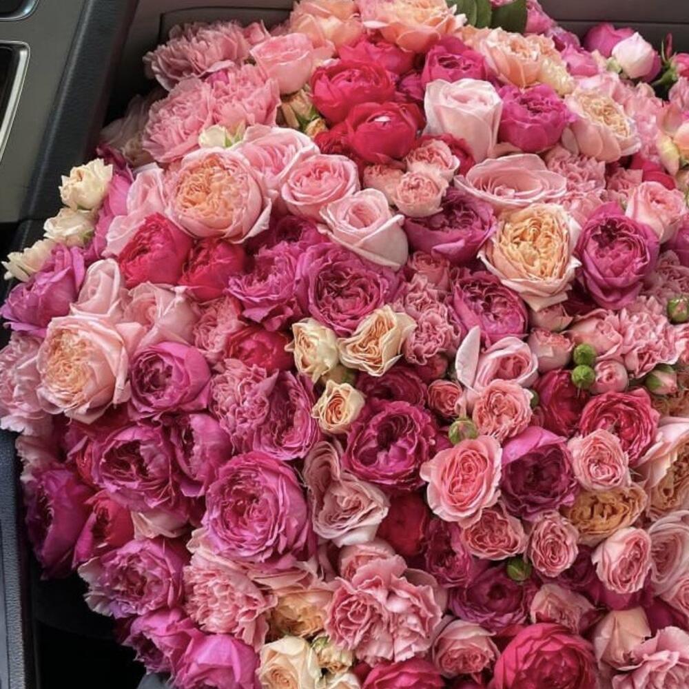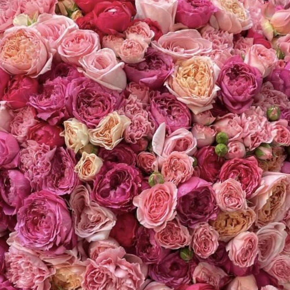 œillets roses - 20 pce roses spray rose - 10 pce roses roses ohara - 10 pce spray de pivoine framboise jullieta - 30 pce spray de pivoines jullieta - 20 pce roses spray salinero - 10 pce