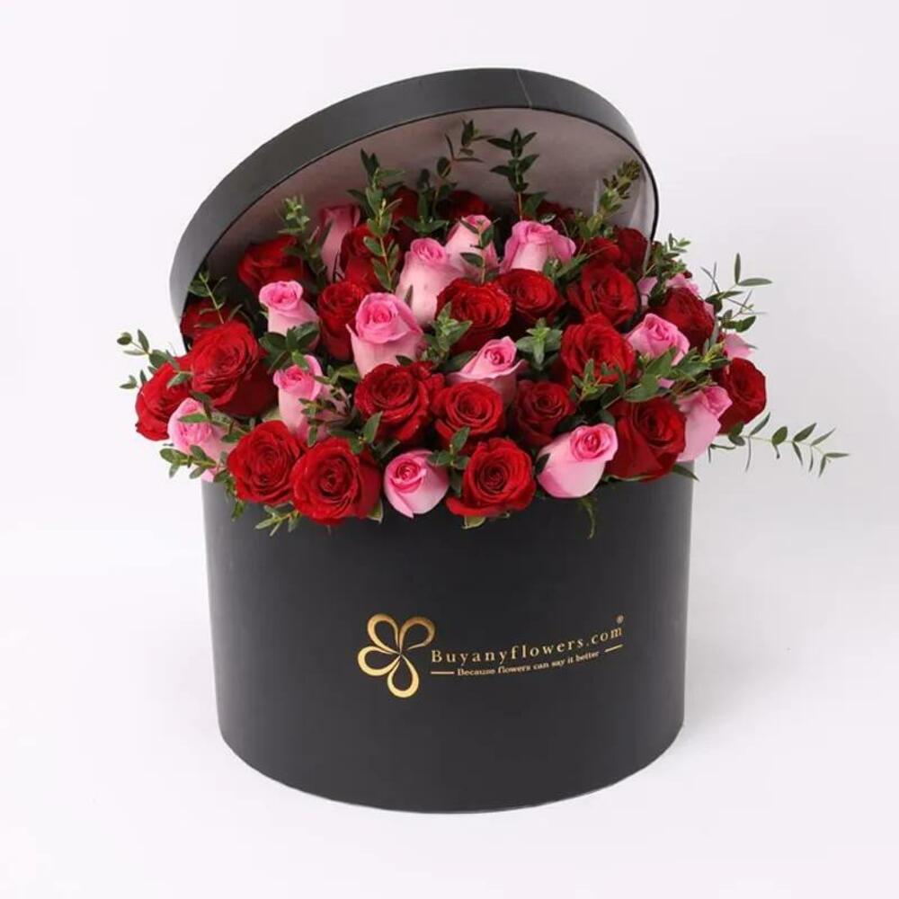 Red rose - 21 pce Pink rose - 20 pce boîte ronde noire - 1 pce