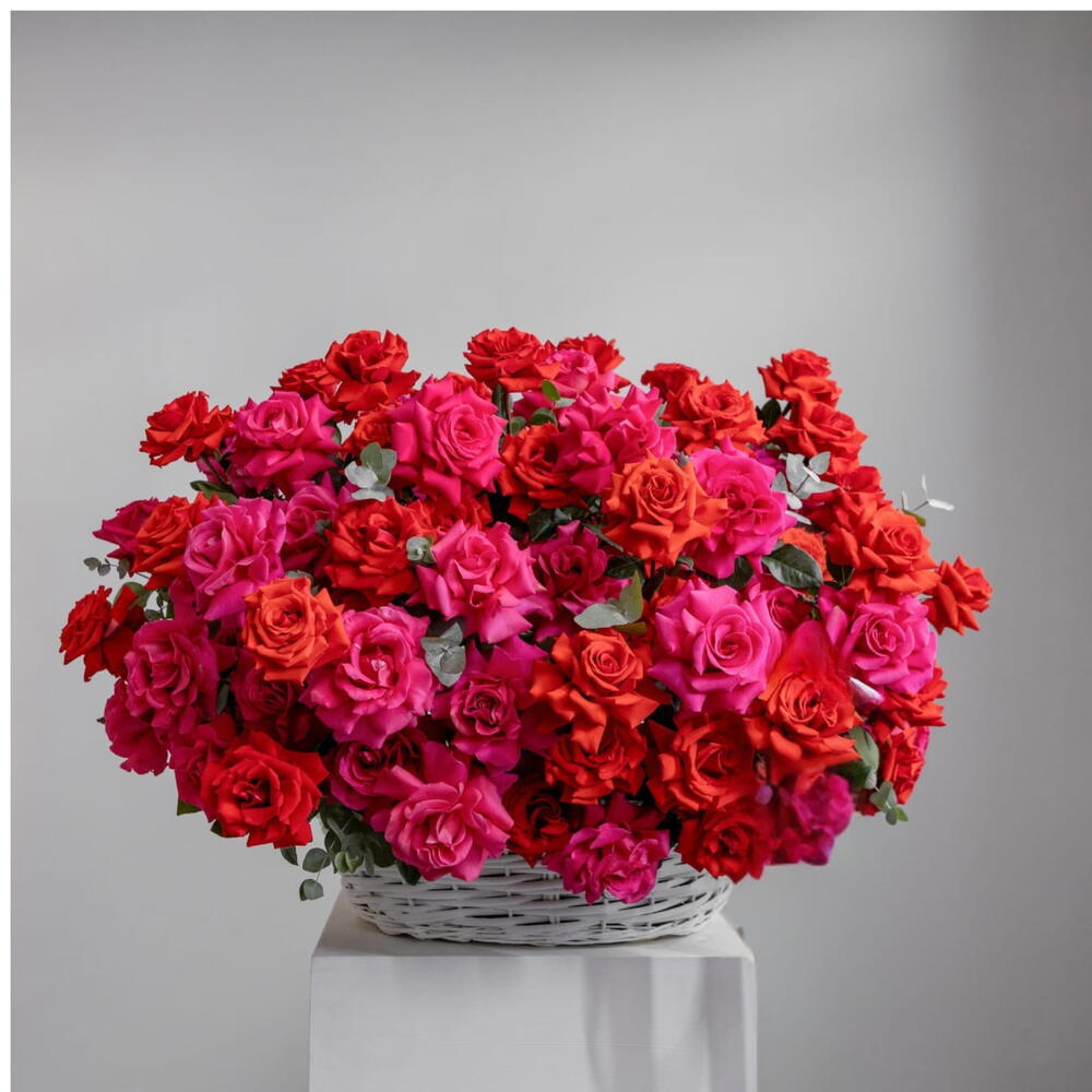Entrez dans le luxe avec Darling 101, notre panier de roses XL premium comprenant 51 roses rouges épanouies et 50 roses rose vif épanouies, arrangées avec élégance dans un panier surdimensionné. Il s'agit de l'une des créations les plus romantiques et spectaculaires de Majd Flowers — parfait pour les anniversaires, les fêtes d'anniversaire, les demandes en mariage, la Saint-Valentin ou lorsque vous souhaitez surprendre quelqu'un par un geste grandiose et inoubliable. Composé de roses entièrement épanouies et extra-larges, cet arrangement offre un volume, une couleur et un parfum maximaux. L'association d'un rouge romantique profond et d'un rose vif vibrant crée l'équilibre parfait entre passion et douceur. Chaque rose est choisie à la main pour sa fraîcheur et sa beauté, faisant de ce panier un cadeau de luxe haut de gamme pour une personne vraiment spéciale. Idéal pour les livraisons à Dubaï, Sharjah, Ajman et dans les Émirats arabes unis, ce panier de roses XL est un favori des clients recherchant :